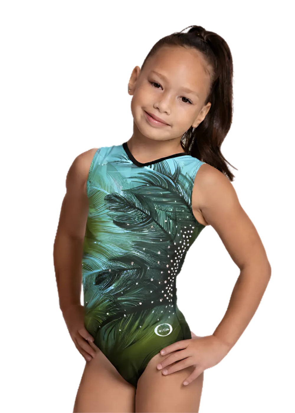 Evocative of freedom and growth, Emerald Drift Leotard combines feathered green and gold sublimation with sleek black accents. The design flows diagonally across the body, creating natural movement that mirrors the gymnast’s every step. With its modern back straps and luxurious finish, it represents progress, creativity, and confidence.